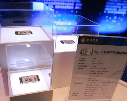 亮相发布会现场的首批北斗物联网模块。刘政宁 摄