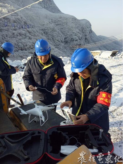 据悉,素有“小西藏”之称的极贫乡石朝海拔1140米,全年平均气温13度,山岭连绵,地势险峻,大部分电力线路都是架在高坡上,给供电人员巡线带来很大的困难,以前靠人工进行徒步巡视,巡线人员花费大量时间爬山涉水到达杆塔就为了十几分钟的检查,同时存在人身安全,巡视的质量也不高。入冬以来,石朝低温天气持续,早已大雪纷飞、银装素裹,近几天,气温甚至降在零下4度左右徘徊,电力线路覆冰观测工作更加困难。为确保贫困群众温暖度冬,遵义务川供电局启动抗冰保电应急预案工作,成立“党员突击队”和“青年突击队”奔赴石朝抗冰一线,对35kV枫石线,10kV石金线、10kV石石线、10kV石大线等4条100余公里高山重冰区线路设立覆冰观测点,实行24小时不间断蹲守特巡。为达到有效巡线的目的,该局利用无人机辅助开展覆冰观测工作,据巡线人员介绍,采用无人机巡线,可以大大缩短交通不便、地势险峻的山区输电线路的巡视时间,以巡视的35千伏枫石线为例,这条线路一共有67基杆子,线路长度为21公里,按照以往的人工巡视,需要4天时间才能巡完。现在应用无人机巡视,则不到10个小时就可以全线巡完,还可以多维度查看覆冰情况,提高巡视精度,省时省力又安全。同时确保低温雨雪天气极贫乡3577户的可靠供电。