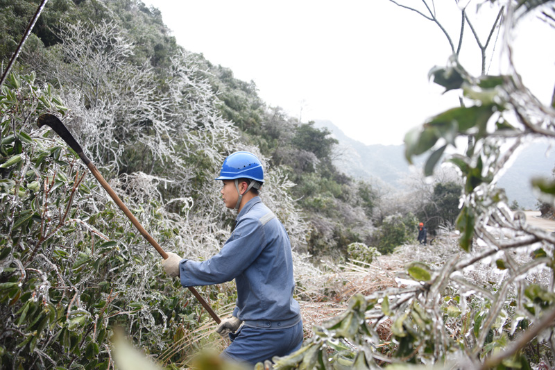 1月9日,南网广东肇庆广宁供电局员工对10千伏葵洞线进行特巡和树障清理。邓永森 摄
