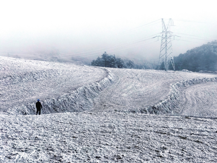 云南昭通气温骤降,昭通电网96条线路覆冰。陈斌 摄