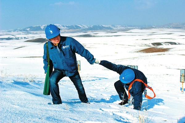 乌鲁木齐供电公司工作人员对10千伏羊雷线开展震后特巡。