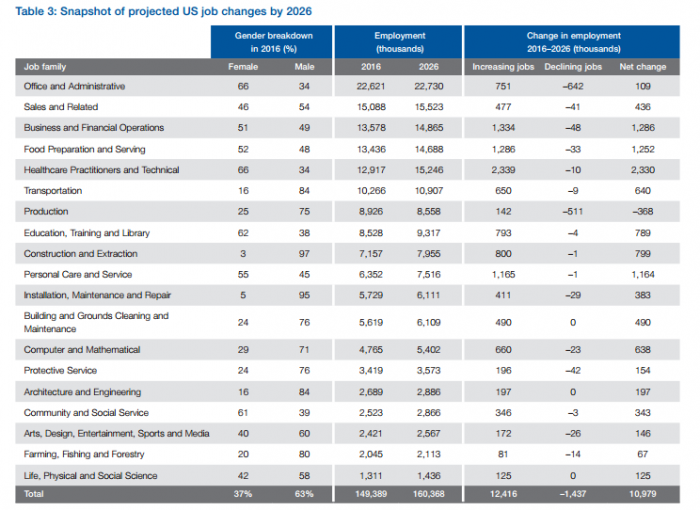 部分原因是因为许多工作仍然严重依赖于某一性别。作为一个例子,报告提到秘书和行政助理角色在很大程度上是由女性填补的。由于自动化接管管理任务等职责,大约有16.4万名妇女的工作可能面临风险。