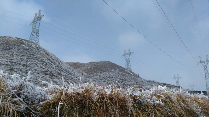 2月1日,韶关220千伏关通线、110千伏大梅线依然是冰封世界。杨挺 摄