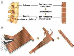 近年来,随着可穿戴设备的快速发展,对可弯曲的柔性电池的需求也快速增加,各种柔性电池的设计也是层出不穷,但是大多数柔性电池的设计都会导致锂离子电池的能量密度的大幅降低,影响可穿戴设备的续航时间。为了解决这一问题,哥伦比亚大学研究人员受到生物脊骨结构的启发,研发了一款柔性锂电池,在保证良好的柔性的同时,还保持了高体积能量密度的优势。