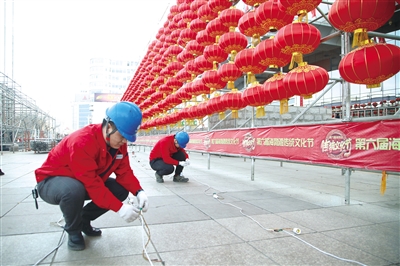 圆满完成重大活动和节日保电任务。图为内蒙古电力公司员工对节日庆祝场所的线路和设备进行用电情况巡查