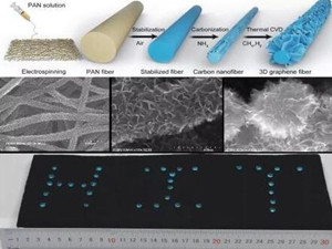 目前的三维石墨烯制备技术存在孔隙过大、活性边缘缺失、缺陷多、杂质多、导电性差、力学性能差等问题,材料科学与工程学院博士生曾杰在导师于杰的指导下,利用热化学气相沉积(CVD)成功实现石墨烯片在电纺纳米碳纤维表面的垂直定向生长,获得了一种新型的三维石墨烯连续纤维材料,主要结构和性能指标比现有三维石墨烯材料大幅提高。