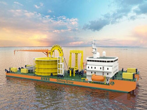据悉,该船为我国第一艘自主研发,同时也是福建省内建造的最大规模海底电缆施工船舶,其5000吨海缆装载量乃国内首制。船总长110米,型宽32米,型深6.5米,最大吃水4.8米,入级中国船级社(CCS),是一艘钢质、非自航、方驳、新型海底电缆施工船,主要用于海上风电场海缆敷设施工、岛屿间互联供电以及海缆检修等,也可用于其他海洋工程。