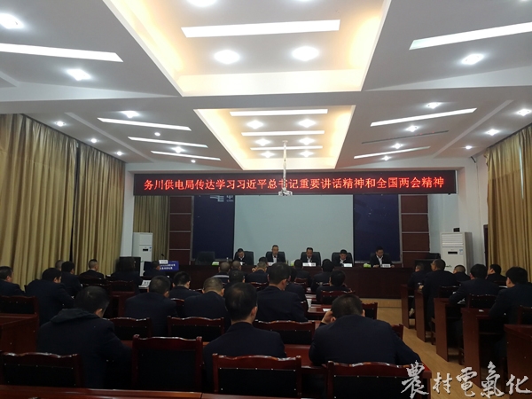 农村电气化网讯:3月26日,务川供电局党委理论学习中心组开展了集体学习,认真学习贯彻习近平总书记重要讲话和全国两会精神。局党委中心组成员和各单位部门负责人参加学习