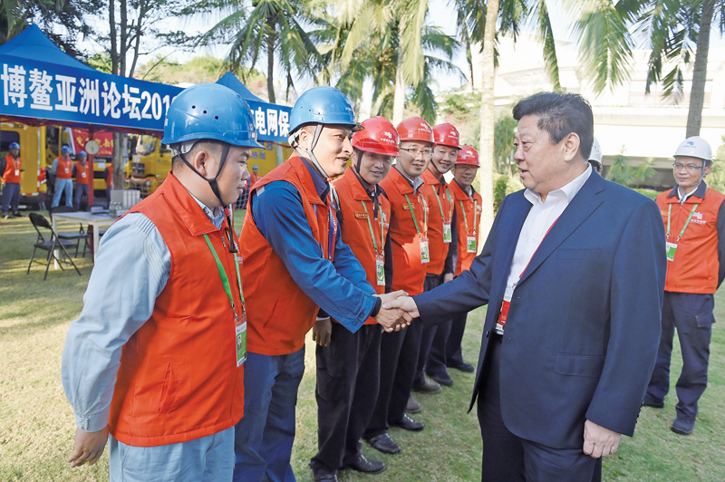 公司党组书记、董事长李庆奎到博鳌亚洲论坛2018年年会南方电网保供电现场指挥部检查指导工作。 南网报记者 李志杰 吴兴波 摄
