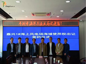 【电缆网讯】4月10日,浙江省平湖市农业经济局(海洋渔业局)举行嘉兴1号海上风电场海域使用权出让签约仪式,局党委书记、局长邱志根同浙江浙能嘉兴海上风力发电有限公司总经理励钧达签订《国有海域使用权出让合同》。 据悉,嘉兴1号海上风电项目是列入国家能源局批复的浙江省海上风电规划及《浙江省重大建设项目“十三五”规划》、《浙江省电力发展“十三五”规划》的重大清洁能源项目