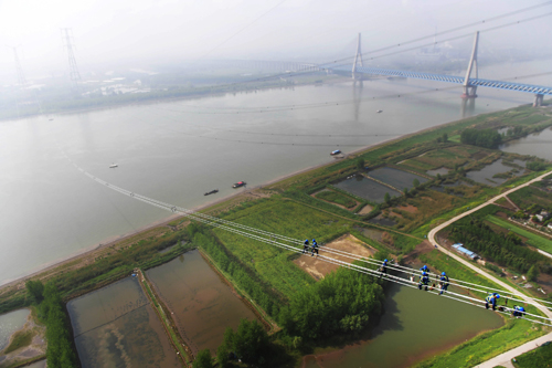 据了解,长江大跨越工程2017年1月开始立塔,2018年2月完成杆塔组装施工。为做好此次跨越放线,施工项目部创新应用可视化管理系统和巡线机器人,全程监控工程进展;与科研机构合作攻关,改进放线工艺;首次在输电线路跨越工程中采用大截面导线,综合经济比较高。