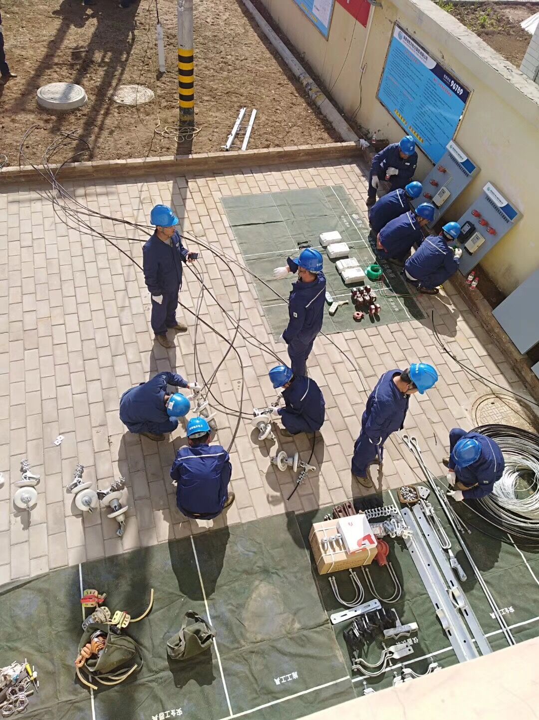 在练兵现场,该公司成立了专门的领导小组,安监保卫部、生产技术部技术骨干重点对高处作业安全、立杆、登杆、拉线制作、仪器仪表的使用、弧垂调整、接地电阻及变压器绝缘电阻测量分析、瓷瓶装配、横档安装等对参培人员进行了细致地讲解,并对实操过程中发现的问题及时纠正。活动负责人王博按照提前制定好的方案将参培人员分为四组,每组制定专人进行安全监督,并对活动涉及的金具材料就所有型号、功能、作用逐一介绍。