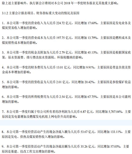 【电缆网讯】近日,华电集团下属上市公司华电国际发布了2018年一季度报显示,今年第一季度,华电国际归属于母公司所有者的净利润为人民币6.87亿元,同比增加5707.04%,主要原因是发电量增加及燃煤发电机组上网电价升高的影响。