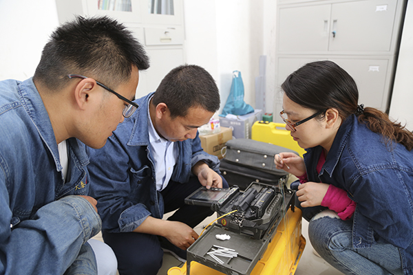 4月27日,新疆第二师天泰电力有限责任公司通信班班长王成山正在手把手教新员工学习全套光纤熔接技术,这是该公司开展“弘扬工匠精神 推动高质量发展”活动的一个缩影。将比头发丝还细的6组24根光纤熔接在一起,需要掌握平、稳、快三字剥纤法、裸纤清洁和切割、熔纤机光纤接续等多项技术要领,对接续人员操作水平、操作步骤、熔接参数设置要求极高。