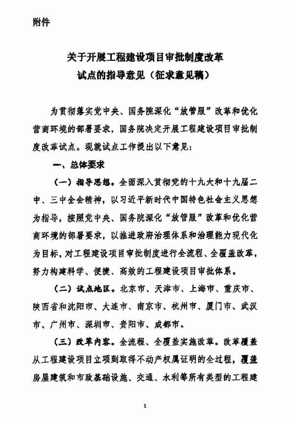 另附上,近期网上刷屏的一篇住建部《关于开展工程建设项目审批制度改革试点的指导意见(征求意见稿)》征求意见通知全文,仅供大家参考!