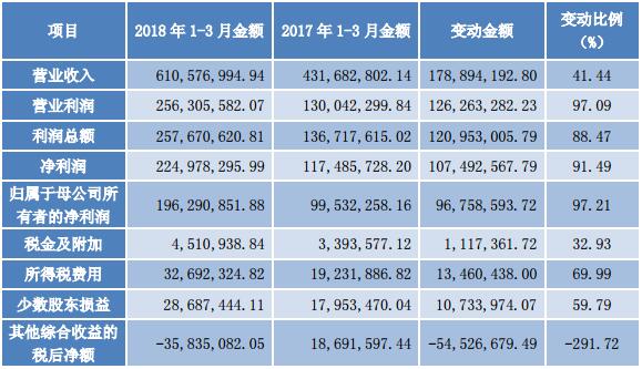 据分析,节能风电一季度营业收入较上年同期增长41.44%,营业利润较上年同期增长97.09%,利润总额较上年同期增长88.47%,净利润较上年同期增长91.49%,归属于母公司所有者的净利润较上年同期增长97.21%,主要系本期公司所在部分区域弃风限电情况较上年同期改善带来的售电量及售电收入增长所致。