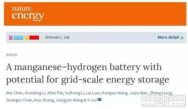 崔屹教授在三年前提出一个新构想——将锰和氢分别用作正负极,以水做电解质,在理论上应该能够实现大规模储能在能量密度、使用寿命和价格等多方面的严格要求。在崔屹教授指导下,其在斯坦福大学的中国籍博士后研究员陈维对此进行了长达三年多的探索和实验测试。陈维表示,对氢气电池装置和各项参数进行反复调试的实验做了不下1千次后,他们终于得到了一个优化的装置和测试条件,从而获得了优异的电池性能。这款新研发的电池可以在反复充放电1万次后依然没有明显衰变,电池寿命在现有主要储能方式的基础上实现了一个数量级的提升。