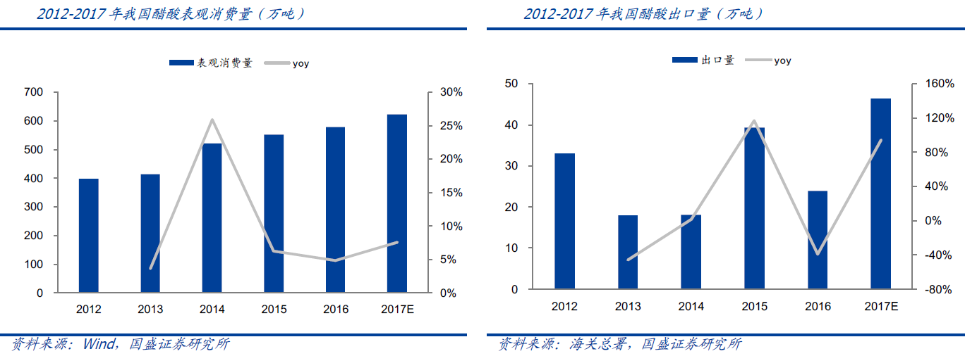 从全球角度来看,本次价格大涨印证全球醋酸短缺,我国醋酸出口有望持续大增。2018年一季度我国醋酸出口量为12.7万吨,而去年同期为4.9万吨,出口大增159%,西南证券预计在海外装置开工不稳定情况下叠加油价上行推高海外乙烯法成本,预计出口增速仍有望持续增长。