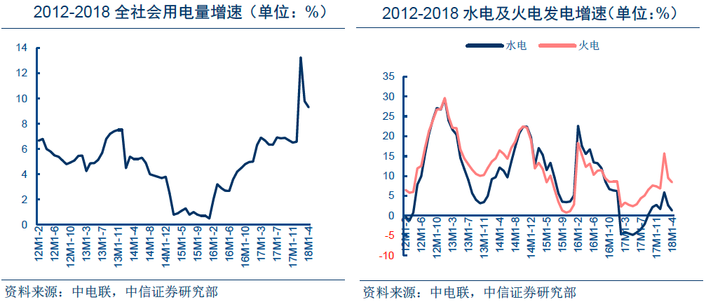 此前的煤价反弹,“淡季不淡”引发了市场对于旺季高煤价拖累火电盈利的担忧。中信证券认为,与一季度相似,长协煤较大的签订量及较高的履约率可以有效平抑煤价短期波动。同时,从电力需求来看,前4月全社会用电量增速9.3%,持续处于较高水平;同时前4月水电发电量增速仅为1.3%,需求拉动使得火电发电量增速达71%,若迎峰度夏期间来水未出现激增火电维持较高开工率,因此火电旺季业绩弹性值得期待。