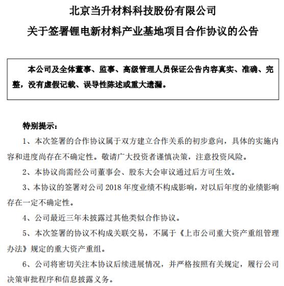 【电缆网讯】5月28日晚间,当升科技发布公告称,公司与金坛金城科技产业园管理委员会在北京签署了《关于“当升科技锂电新材料产业基地项目”合作协议》。