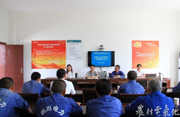 农村电气化网讯:为引导广大员工把握发展形势,明确目标任务,统一认识、凝心聚力,围绕近期作风纪律、劳动纪律、优质服务等开展明察暗访工作通报的情况,5月29日,国网乐至县供电公司党委书记、副总经理夏云飞率党建工作部一行到城郊供电所开展形势任务教育宣讲暨作风纪律整顿大讨论活动,这是该司狠抓员工队伍作风纪律建设的一个缩影。 会上,夏云飞针对省、市公司围绕作风纪律、劳动纪律、优质服务和营业厅标准化建设等开展明察暗访工作检查情况予以通报,对负有管理责任的单位负责人及违反工作纪律和劳动纪律的员工进行通报批评