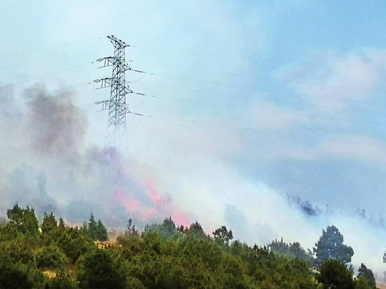 5月22日,云南省大理经济开发区山林发生火情。 李灿斌 摄 5月22日,云南电网大理片区上演惊险一幕