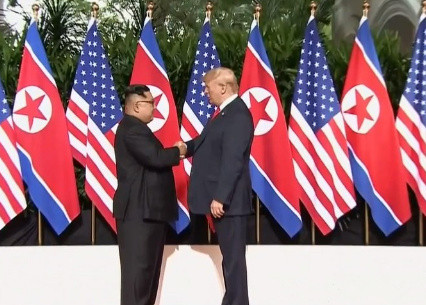 朝鲜国务委员会委员长金正恩与美国总统特朗普12日在新加坡举行两国在任领导人史上首次会晤,就朝鲜半岛无核化以及缓解双方紧张关系展开对话。