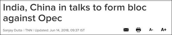 多家印媒14日报道称,亚洲最大的两个原油买家中国和印度正考虑合作成立“石油买家俱乐部”,以抗衡石油输出国组织(OPEC)在原油市场的主导地位。《印度时报》报道截图印度《经济时报》报道截图 《印度时报》报道称,6月11日,中印两国企业就成立一个“石油买家俱乐部”(oil buyers’ club)问题在北京开始正式进行会谈