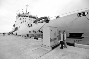 浙江舟山供电公司员工为“向阳红”科考船检查岸电设备。 舟山供电公司供图