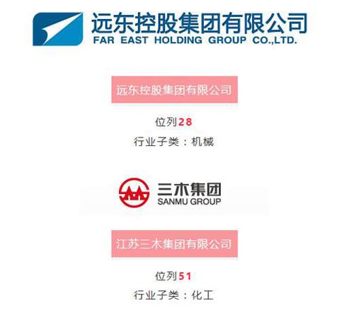 其他3家入围宜兴企业分别是:江苏三木集团有限公司(51位),江苏江润铜业有限公司(68位),江苏华地国际控股集团有限公司(95位)。