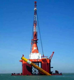 据悉该项目规划装机容量为198兆瓦,共布置36台5.5兆瓦风机及1座220千瓦海上升压站。此次完成的首台海上风电管桩,单桩重量约950吨,长75.5米。