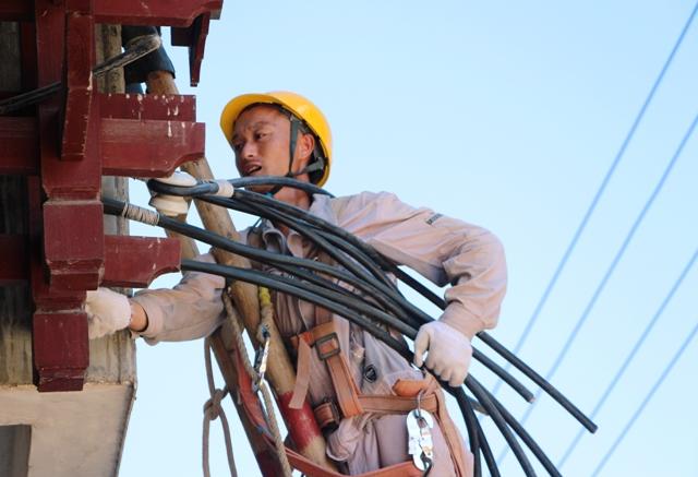 7月11日,国网江永县电力公司员工冒着35摄氏度的高温天气,合理安排作业时间在江永县桃川镇隆兴居委会信用社2#台区开展电网升级改造工作,当天的任务是展放安装低压下户线路。