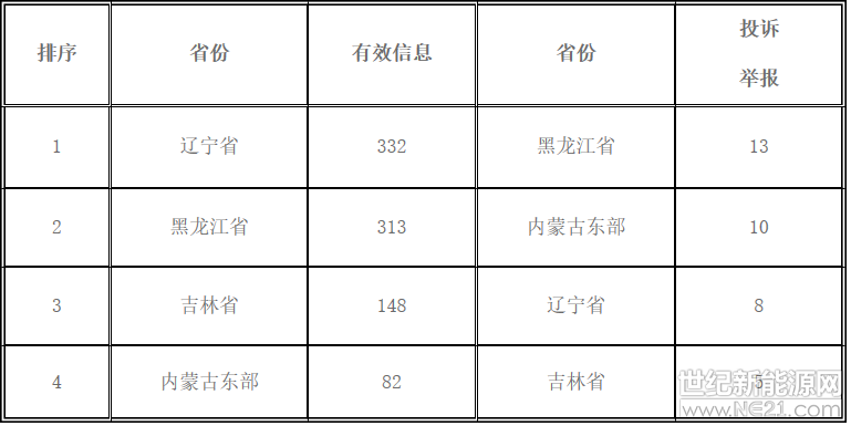 2018年6月,从12398能源监管热线收到的有效信息数量来看,辽宁省均居首位;从投诉举报数量来看,黑龙江省居首位。(详细情况见表二)