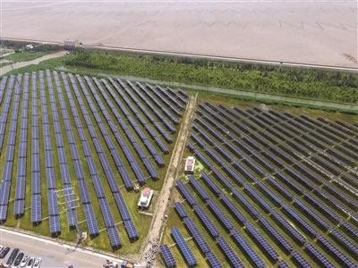 4500亩滩涂盐碱地成滩涂农光互补光伏发电基地。 胡志钦 摄