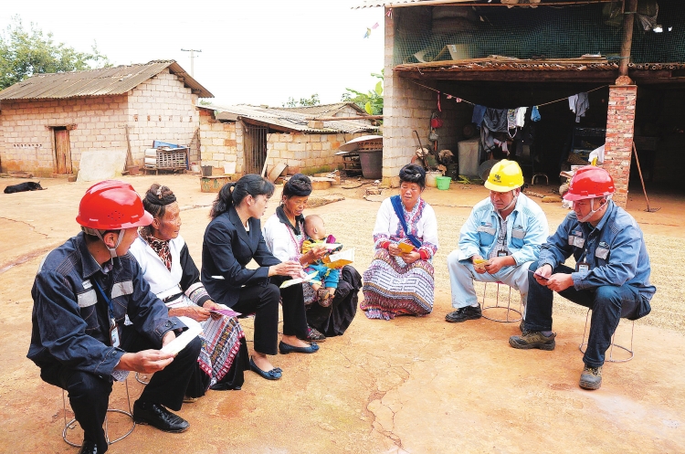 云南电网公司昆明富民供电局城区供电所员工进行走访,核对客户信息。 云南电网公司临沧耿马供电局孟定供电所员工为客户讲解节能用电知识