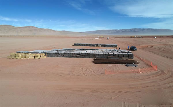这是阿根廷胡胡伊省高查瑞光伏发电站项目现场(7月11日摄)。 由中国企业承建的高查瑞300兆瓦光伏电站项目在今年4月正式开工,总工期约11个月