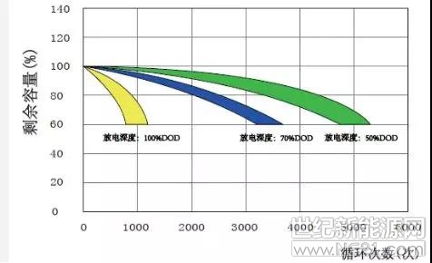 在电池使用过程中,电池放出的容量占其额定容量的百分比称为放电深度。放电深度的高低与电池寿命有很深的关系,放电深度越深,其充电寿命就越短。