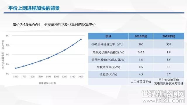 东部地区要实现8%的收益率,光伏电价要在0.6元以内就是可以实现,西部地区价格在0.5元以内就可以实现8%的收益率,实现了大工业平价。到2019年底,可能320W的组件也会非常常用。