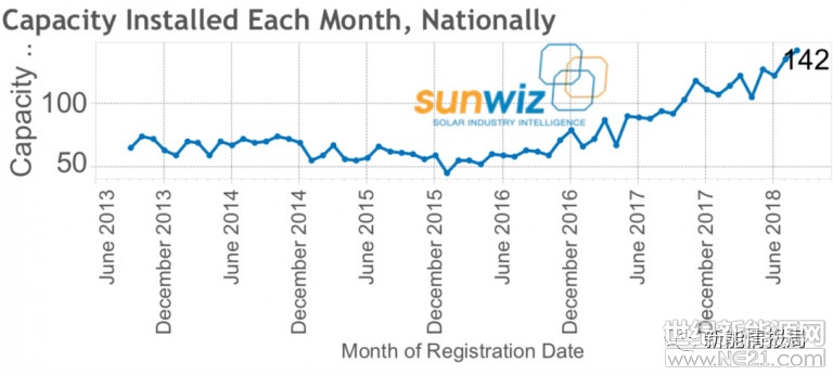 根据澳大利亚Sunwiz的最新数据,8月屋顶共安装了142MW的光伏电站,增长主要得益于户用和小型商业装机的支撑,尽管系统的价格略有上涨。