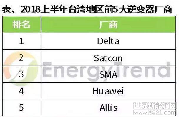 电站动工前有七成的问题来自于基座建置(Foundation),完工后则有七成的问题出自逆变器,因此逆变器后续的在地保固服务为系统厂考虑的重点。有鉴于此,台湾地区2018年上半年逆变器出货量前三名厂商分别为台达、Satcon与SMA。其中,台达蝉联出货量之冠,市占率高达四成。此三家厂商均在台湾地区布局已久,并提供完整的售后服务。