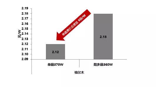 4、如果单晶系统的LCOE要想做到和多晶系统0.372元/度持平,单晶组件的售价应当低于酷多晶组件6分/瓦。
