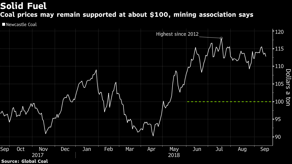 亚太地区基准纽卡斯尔今年的价格已上涨约10%,平均价格为105美元,为2011年以来的最高水平,因为全球最大用户中国需求强劲。澳大利亚矿业公司新希望公司(New Hope Corp.)也标志着供应紧张以支撑价格约100美元的前景。
