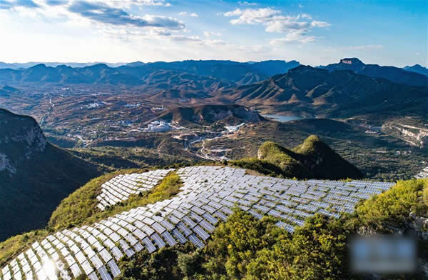 这是10月7日拍摄的河北省武安市石洞乡光伏发电项目(无人机拍摄)。近年来,河北武安市加快发展清洁能源,利用太行山区光能资源优势,推进山地光伏发电基地建设,壮大绿色经济