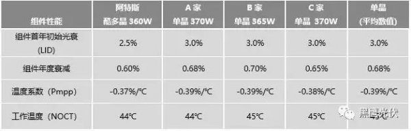而在9月18日,阿特斯官方微信发表了一篇题为《单晶与多晶,谁的度电成本LCOE更低?》的分析文章。文章假设在国内一类辐照资源地区的青海格尔木,投资一座55兆瓦地面电站,可选组件类型分别为阿特斯360瓦酷多晶组件,或其他第一梯队厂家的370瓦单晶组件。最终,谁的度电成本LCOE更低?