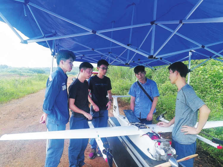广东电网公司机巡人员为海南电网公司员工演示固定翼无人机操作要点。 谢思鹏 摄