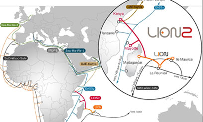 长达2,700公里长的LION2海底光缆系统于2012年4月通过认证准备服务(RFS),将马达加斯加连接到马约特岛和肯尼亚。