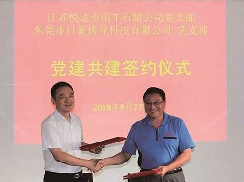 【电缆网讯】日前,东莞市日新传导科技有限公司(简称“东莞日新”)与江苏悦达专用车有限公司(简称“江苏悦达”)在新能源汽车领域确立合作关系。同时,双方还举行了“以共建促党建、以党建促发展”的党建共建签约仪式