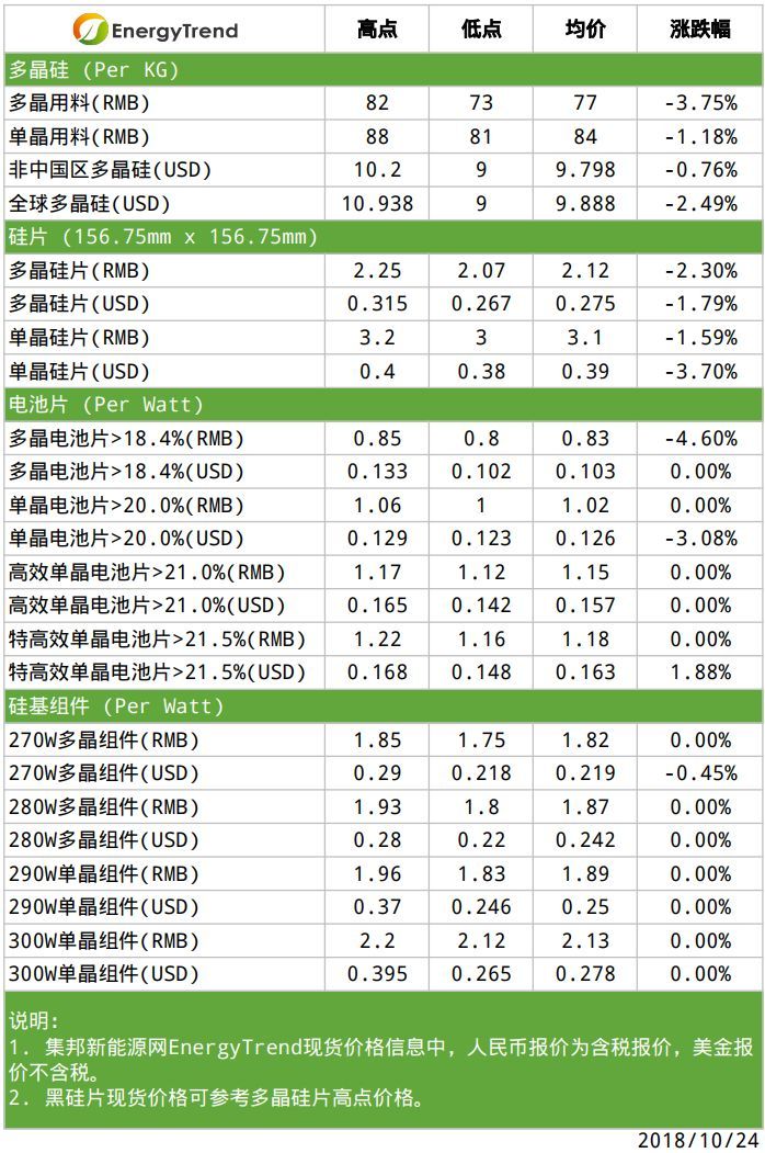 说明:集邦新能源网EnergyTrend应市场需求,自本周起新增“特高效单晶电池片(>21.5%)”市场价格。