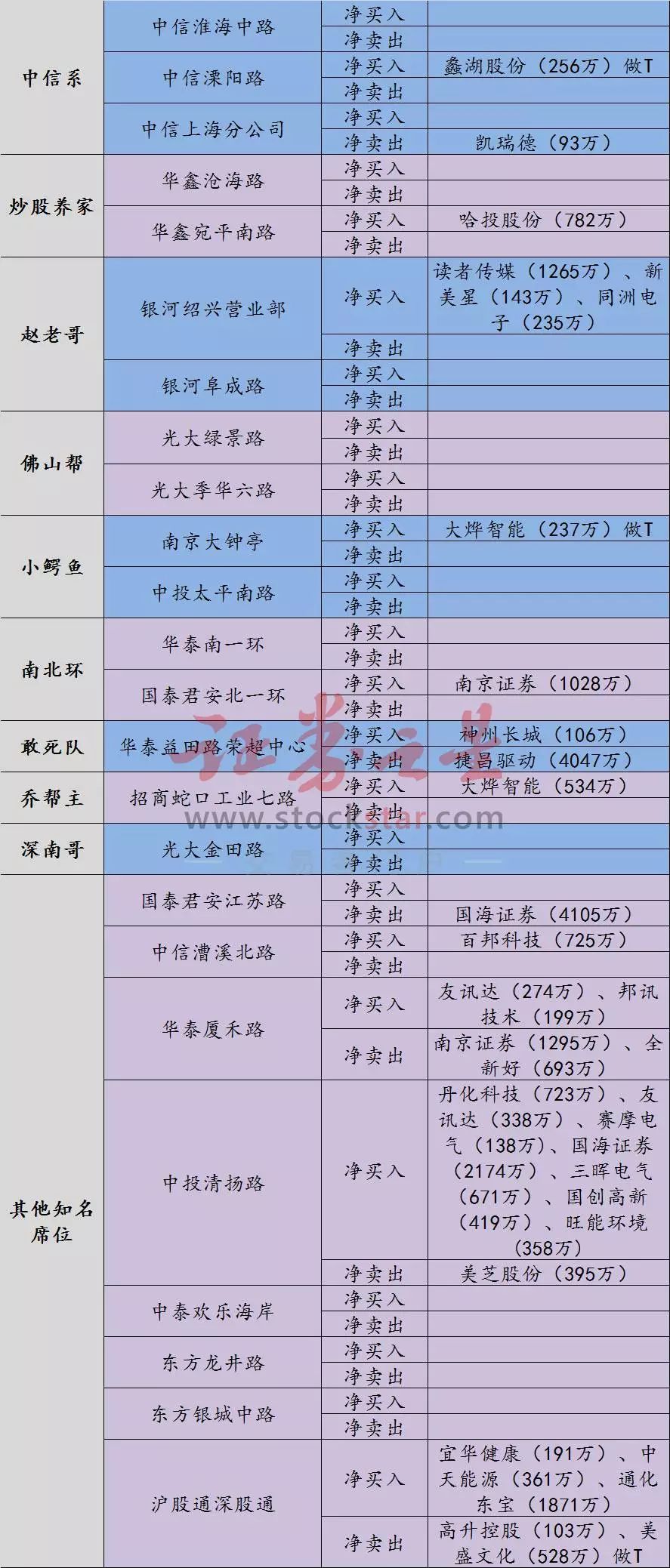 原标题:【龙虎榜】赵老哥多点开花 游资机构接力券商股 南京证券(601990):券商板块强势,长江世纪大道4800万主封,北一环1000万跟进,厦禾路1300万出逃,海通中荣街抛售900万,还有冲高。 捷昌驱动(603583):次新+超跌,中投环球中心1500万主封,财通体育馆1400万跟进,益田路4000万出逃,上方仍有空间