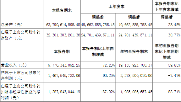 10月25日晚,宁德时代发布第三季度报告,公司前三季度营业收入为191.36亿元,同比增长59.85%;净利润为23.79亿元,同比下降7.47%;扣非后净利润19.85亿元,同比增长88.71%。